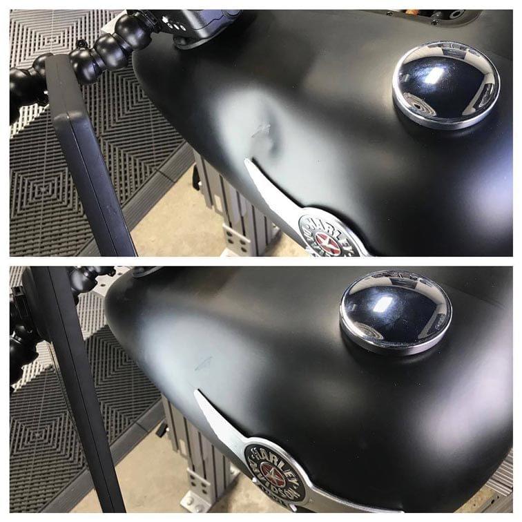- The quality of our repair work is excellent. We’ll completely remove the dent, leaving a perfect while keeping the factory finish intact.